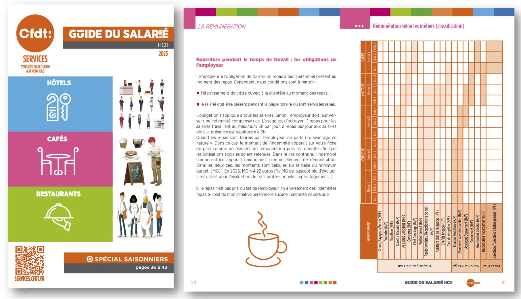 La fédération des Services a préparé l'édition 2025 du guide pour les tsalariés des hôtels, cafés et restaurants, avec des pages spéciales pour les saisonniers.
