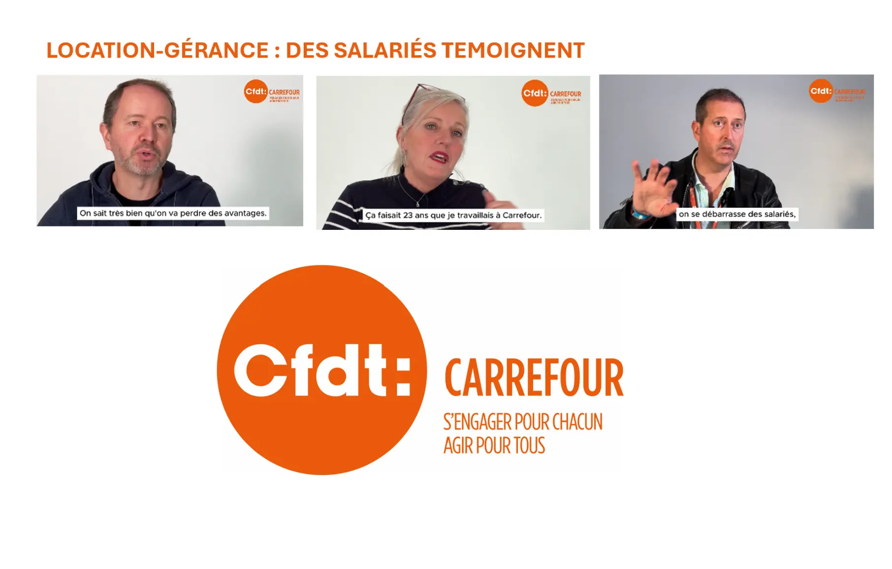 Depuis 2018, Carrefour a passé en franchise ou location/gérance 305 magasins et c’est donc plus de 23 000 salariés qui ont été sortis du groupe ! Cette menace pèse malheureusement sur chaque salarié Carrefour. Pour la CFDT, c’est une restructuration déguisée sans réel accompagnement social et dont les effets négatifs se concentrent uniquement sur les salariés. Les conséquences pour les salariés sont lourdes : perte 2 300 €/ an en moyenne, des conditions de travail dégradées, risques psychosociaux etc. Témoignages de salariés.