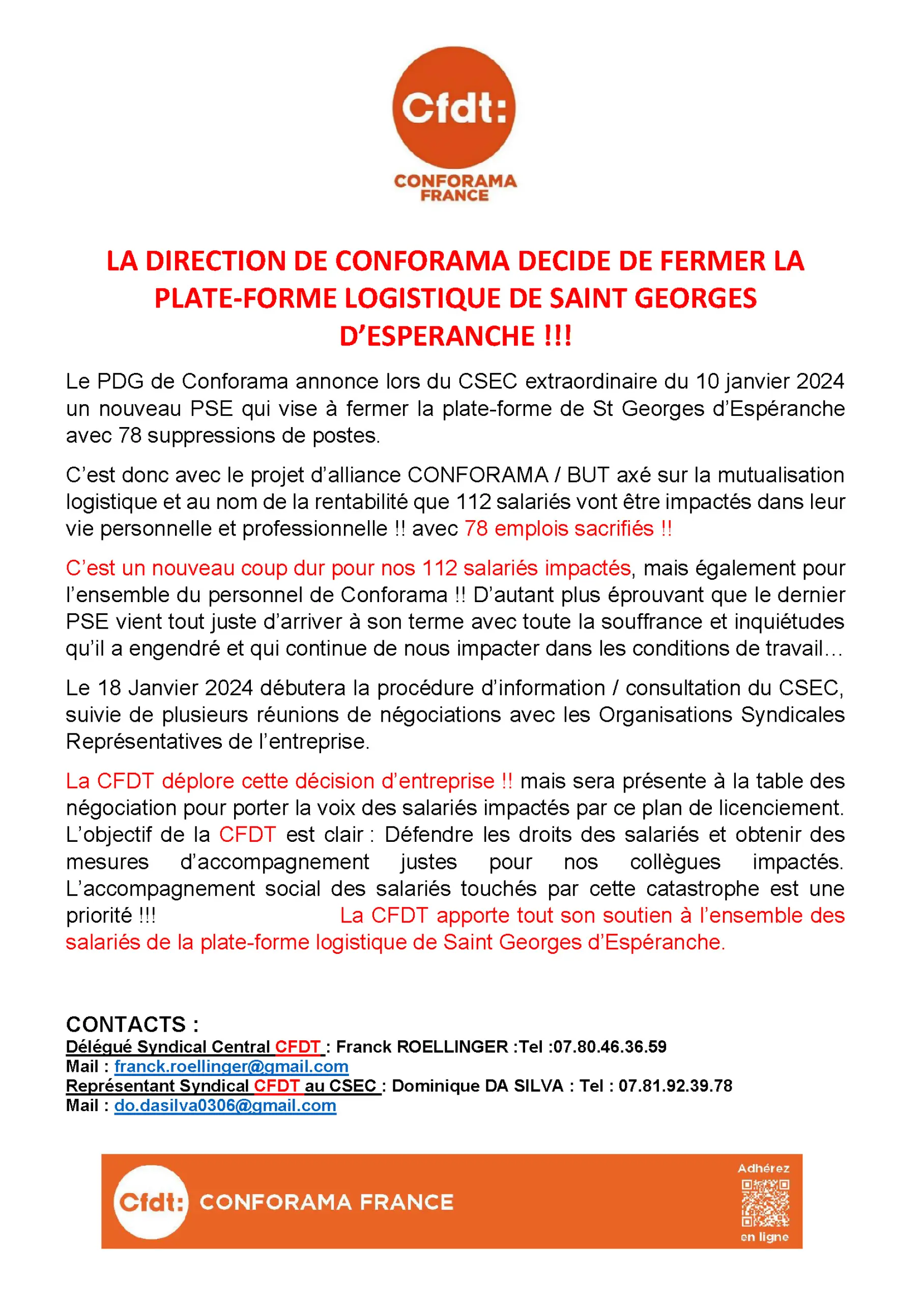 Conforama ferme son site logistique de Saint-Georges Espéranche ( Isère) : 78 emplois supprimés