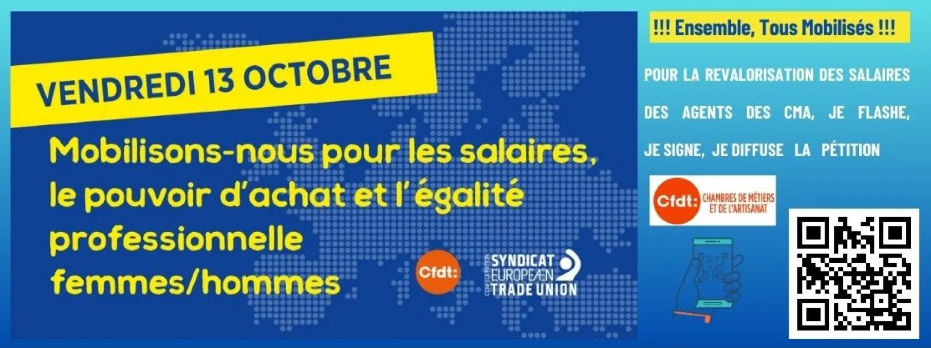 A l’occasion de la journée européenne de mobilisation pour le pouvoir d’achat et pour l’égalité professionnelle hommes femmes, la CFDT des CMA a déposé un préavis de grève pour le 13 octobre.