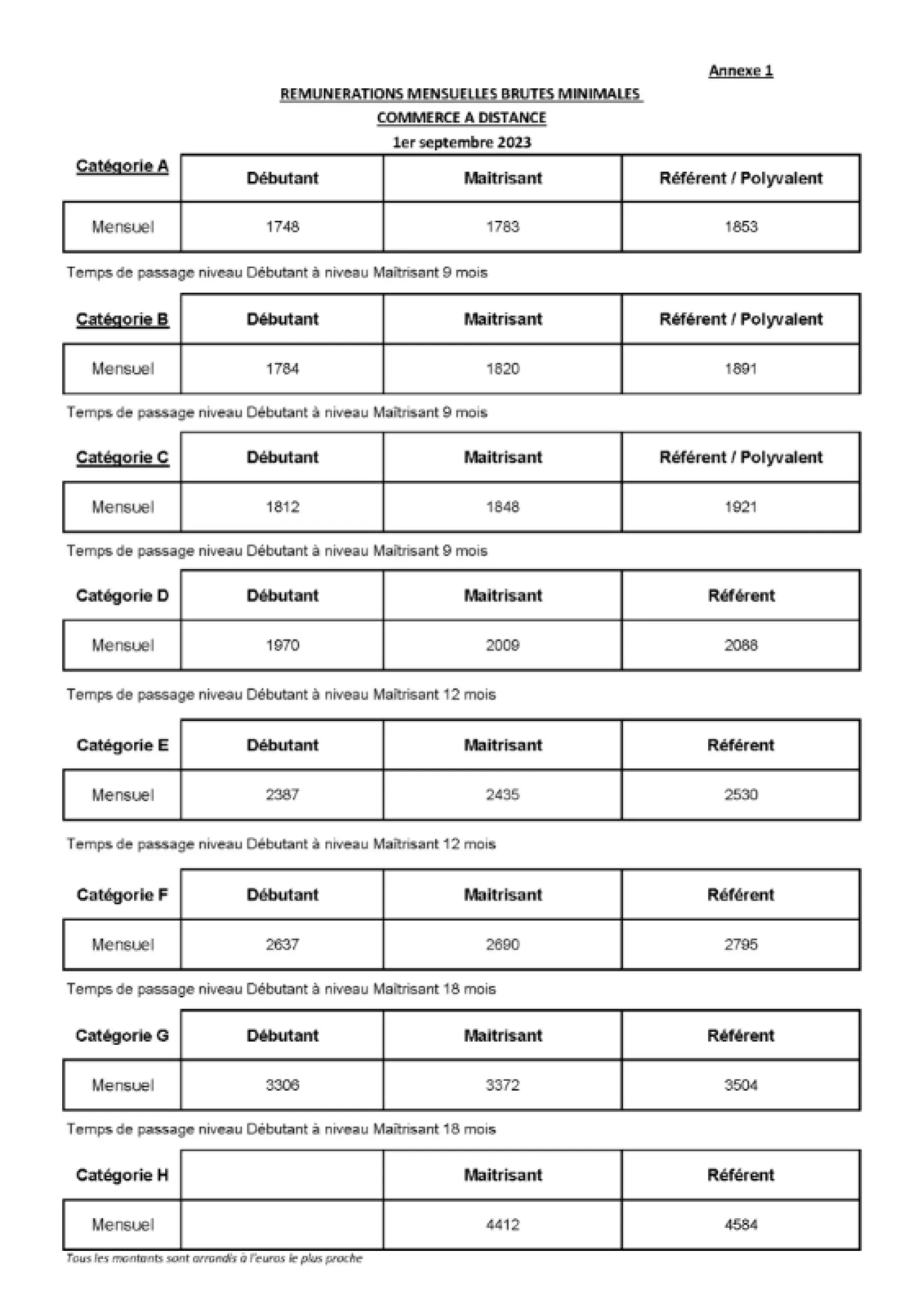 Salaires mensuels conventionnels (niveau débutant) :